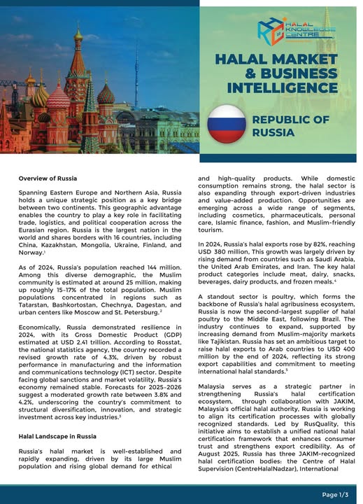 02 Dec, 2025Spanning both Europe and Asia, Russia’s strategic location and 144 million-strong population (including 25 million Muslims) make it a high-potential market for halal trade. In 2024, Malaysia’s ...